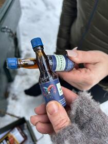 Lecam iekšā mašīnā un braucam uz mūsu bildes vietu - pirmo pārkingu. Esam pārguruši, pamatīgi pārguruši. Pēc siltā un mājīgā restorāna aukstais vējš un tumsa galīgi neiepriecina. Kas ir Lāde? Kur ir Lāde? Pirmajā pārkingā upīte sadala liedagu vairākās “salās”. Te būtu tas salu fakaps? Kamēr viens rubaks centīgi rāpo uz salām, otrs migrē pa kāpām… Da’, nē - yopt! Kādas kāpas, kāds liedags?! Krūmos Lāde ir! Tur ir pamatīgi piedirsts, pa gaisu lido balti papīrīši (labi, ka sūdi ir sasaluši) - tur sētnieka darbiņi! Gandrīz stundu mīcām visus piekrastes krūmus - gan tos, kur ir dirsts, gan tos, kuriem paveicies - Lādes nav… Laikam nepareizais pārkings. Placī vēl pēdējais izrāviens līdz zaļajām miskastēm, iebāžam galvas tajās un mēģinām Lādi tur atrast - tikko piebraukušie igauņi ar lielu interesi uz mums noskatās, cik mēs laimīgi atgriežamies pie mašīnas. Piemiedzam šiem ar aci, lecam mašīnā un uz pēdējo pārkingu prom - viņi jau nesaprata mūsu laimes iemeslu, jo Lāde nebija miskastē. Tātad - mums nebija tur jālien iekšā… Pa ceļam otrs rubaks protestē, jo otrais pārkings ir vistuvāk jūrai. Nē, jābrauc uz tālāko, jo no tā pa dienu mēs sūtījām mesidžu #Centrālei. Tiek nopētītas uzlīmes, misenes, mežs, liedags - izbradāts kāds kvadrātkilometrs teritorijas, bet Lādes nav. Pie velna - KAS ir Lāde? KUR, pie velna, viņa ir? Galīgi sapīkuši un dusmīgi kāpjam iekšā mašīnā un braucam uz vidējo pārkingu - ja arī tur nebūs, nāksies to #Centrāli lamāt no panckām ārā par tik nejēdzīgu Lādes mīklu… Un mūsu ciešanām… Un izmisumu… Kājas sāp nežēlīgi - nobizoti jau 27 km, bet galu vēl neredz. Pie tam arī Brīvdienu komanda ir tikusi pie Lādes mīklas - galīga pakaļa…