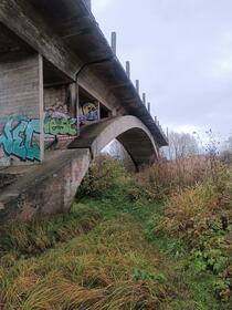 Hints izdīgts, un dodamies uz Zvejnieku tiltu trijatā. Kaut kā šo tiltu bijām palaiduši garām. Logo atrodam salīdzinoši ātri, taču cipars nedodas rokā nemaz. Tilta apakšas izpētītas, gali itkā arī.