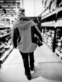 Labi, kļūdījāmies, bet veikals ir liels - jāiet vien apkārt un pie kāda no SuperAlko uzrakstiem gan jau atradīsim meklēto, tikai citā vietā. Sānos no uzrakstiem galīgi nekā nav, bet, ja arī ir, tad ne pārāk uzrunājoši. Veikala aizmugurē pie piegādes zonas durvīm pamanām produkcijas stumjamos ratiņus un ar tekstu: “Neviens duraks taču nemeklēs skaitli uz veikala ratiņiem!”, viens otru grūstot, metamies pētīt ratiņus. Nojumē pīpējošā dāma, kuru mēs pirmīt nepamanījām, pēkšņi ir satraukuma pilna: “Eu, ko jūs šeit pazaudējāt?!” “Da’ neko… Vienkārši trubas deg…” atbildam un pazūdam ap stūri pirms esam atslānīti ar sūdainu mietu vai vēl ļaunāk - iegrabējuši policijas iecirknī. Arī veikala otrā pusē nekā nav, pat loguču nav. Stāvvietā domīgi pētām ceļazīmes - varbūt te kaut kas ir pielipināts? Diemžēl nav. Aizvelkamies atkal līdz ieejai un ilgi un domīgi veramies uz %, uz O burtiem, ik pa brīdim no alko ratu straumes, kas nāk ārā no veikala, ar Parton, Ekskjūzmī, Sorrī, Atvainojiet tiekam pagrūsti malā, bet cipara kā nav tā nav. Apstaigājam, izspīdinām, iztaustām blakus ieejai esošo burgeru būdiņu - nav. Labi, ies apskatīt nojumes, laternu stabus, norobežojumus. Pie tuvākās laternas nekā nav, nojume samīcīta, bet bez cipara pazīmēm, dzeltenie stabiņi… Ka’ tavu māti!!! Mutes pieskrien pilnas siekalām. Nu tāds logucis, ka pat acīm ciet var ieraudzīt!